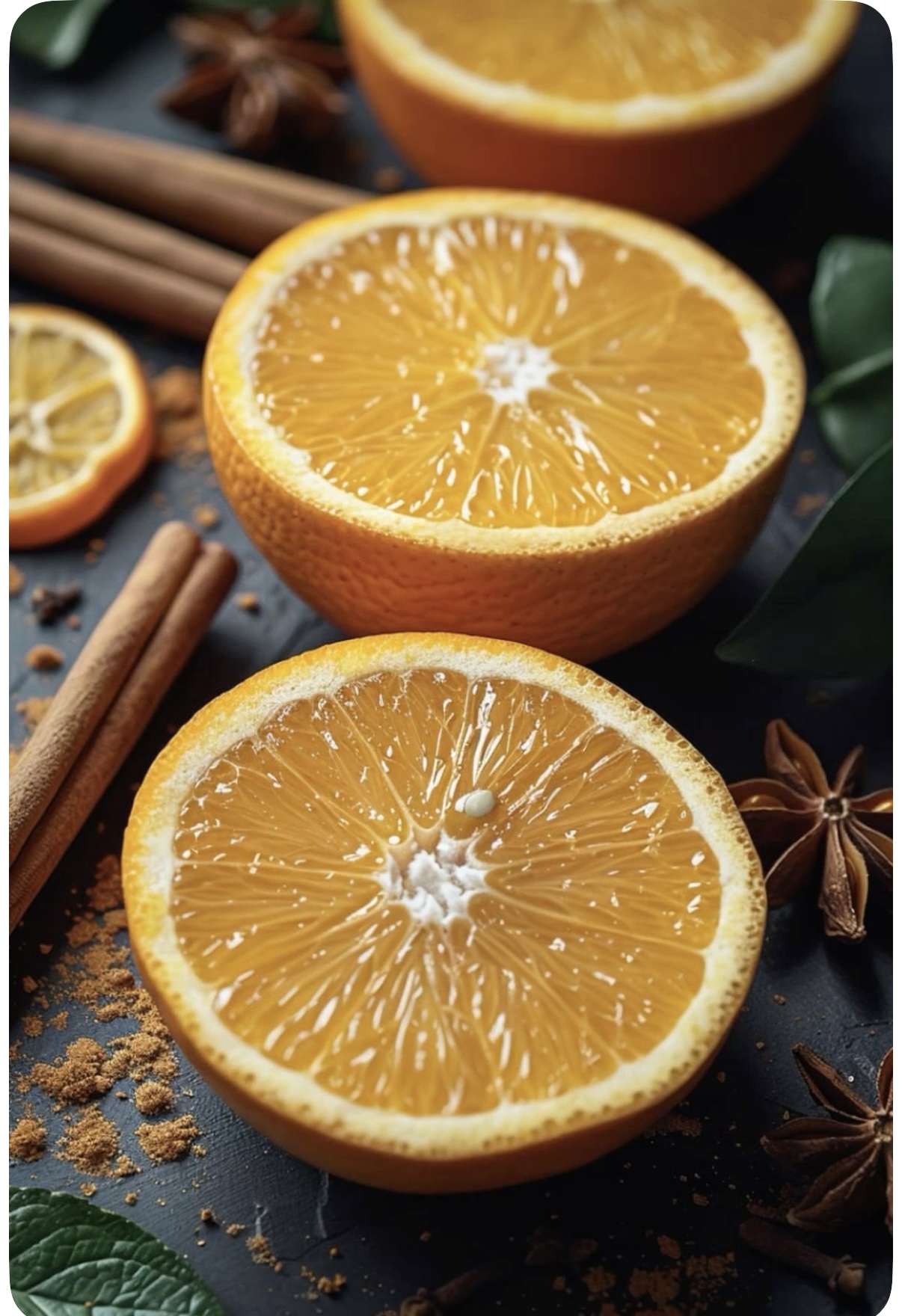 Orange épicéeFamille Olfactive :Hespéridé, épicé Notes de tête :Citron, cannelle Notes de coeur :Orange Notes de fond :Cumin, girofle |